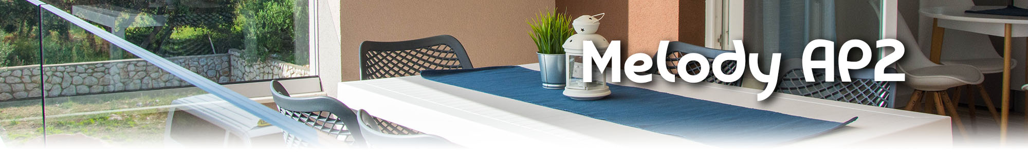 Apartman Melody 2 nalazi se na prvom katu smještajnog objekta. Kapacitet apartmana iznosi 4+2 osobe u dva bračna kreveta i jedan pomoćni ležaj za dvije osobe odnosno trosjed na razvlačenje. Kako bi svojim gostima osigurali maksimalni komfor i uživanje u odmoru apartman smo pažljivo opremili detaljima u skladu s Mediteranskim ugođajem. U apartmanu se nalazi moderno opremljena kuhinja sa svime što vam je potrebno za bezbrižan odmor.